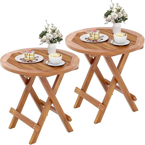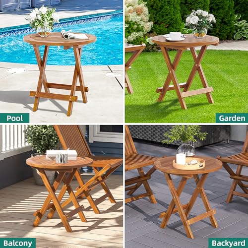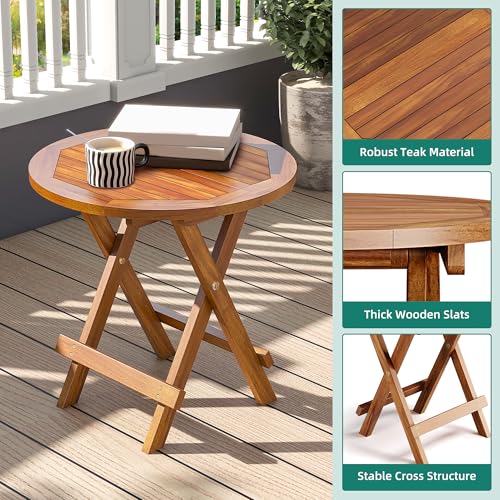 YITAHOME - يتا هوم طاولة جانبية دائرية قابلة للطي من خشب الساج مع ابازيم معدنية واطار على شكل حرف X، مثالية للفناء الخلفي والحديقة وغرفة المعيشة والمطبخ، سهلة الحمل