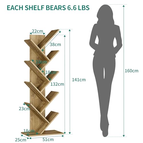 YITAHOME - خزانة كتب قائمة على الأرض على شكل شجرة، وحدات رفوف خشبية صناعية، رف تخزين كتب طويل من خشب البلوط لغرفة المعيشة ومكتب المنزل من يتا هوم