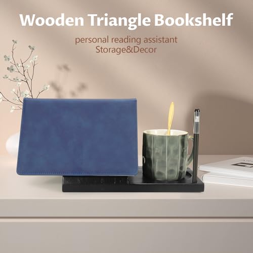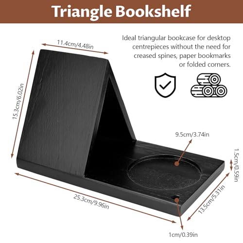 Yitexin - مسند كتب خشبي مثلث مع حامل أكواب، حامل كتب خشبي صغير، حامل كتب للقراءة، ركنة قراءة الكتب لغرفة النوم وطاولة المكتب (أسود) من يتيكسين