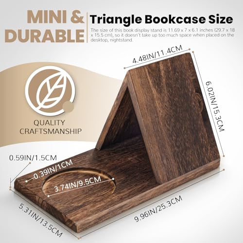 Yitexin - مسند كتب خشبي مثلث مع حامل اكواب، حامل كتب خشبي صغير، حامل كتب للقراءة، ركن الكتب للقراءة لغرفة النوم وطاولة المكتب (بني)