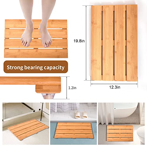 YITIHOME - سجادة حمام خشبية فاخرة من الخيزران من وايتي هوم، سجادة حمام من الخيزران مضادة للإنزلاق لحوض الاستحمام، سجادة أرضية خشبية مقاومة للماء للاستخدام الداخلي والخارجي (50 × 30 × 3 سم، طبيعي)