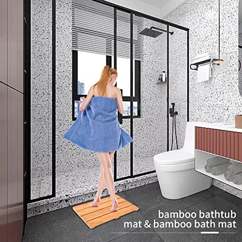 - [طبيعي مقاوم للماء وسهل التنظيف]: سجادة الحمام المصنوعة من الخيزران الطبيعي عالي الجودة المستورد من تايلاند مع ميزات طبيعية ومقاومة للماء. سطح حصيرة الخيزران ناعم ومريح للغاية بسبب وقت طويل من التلميع اليدوي. بالمقارنة مع أنواع الصرف والامتصاص الأخرى من سجادات الحمام للحمام، يمكن أن تجف بشكل أسرع مع سطح مثالي مقاوم للاهتراء، سهل التنظيف بقطعة قماش فقط.