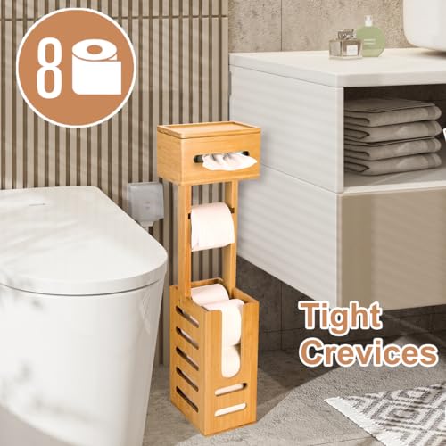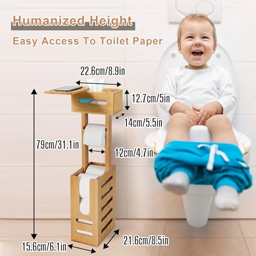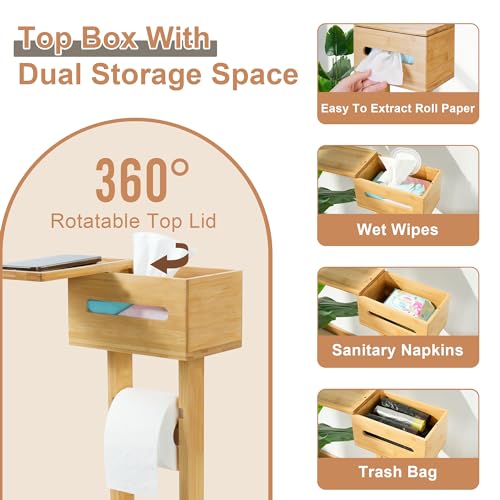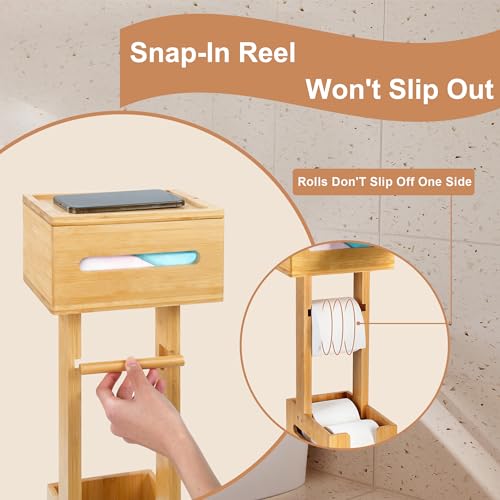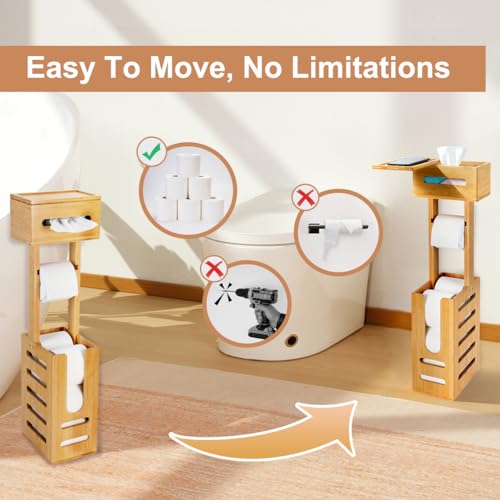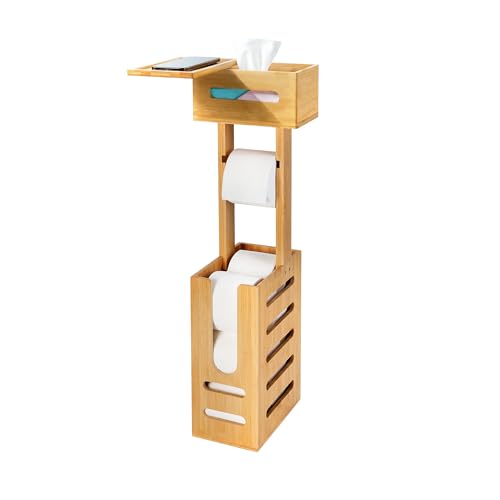 YITOBA - حامل ورق تواليت ثابت للحمامات، حامل مناديل ورقية أرضي كبير وقائم بذاته من البامبو، مع قسم تخزين لـ 4 بكرات احتياطية من يتوبا، 3 في 1