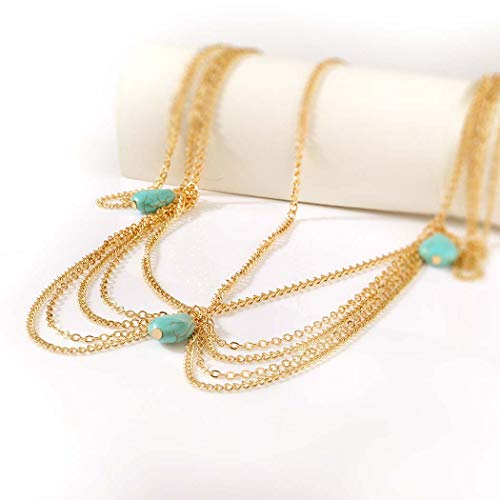 Yizaca - سلسلة رأس بنمط بوهو بلون ذهبي وتركواز، سلسلة رأس مزينة بشراشيب، مجوهرات للنساء والفتيات