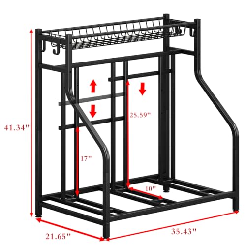- سلة تخزين كبيرة: يحافظ رف الدراجة على معدات الدراجات منظمة ويسهل الوصول إليها. يمكن للسلة الكبيرة تخزين الخوذات والقفازات وإكسسوارات الدراجات، وهي مجهزة بخطافات، لذلك يمكنك أيضًا تخزين الأشياء على الجانب للحفاظ على المرآب الخاص بك مرتبًا.