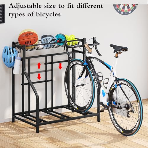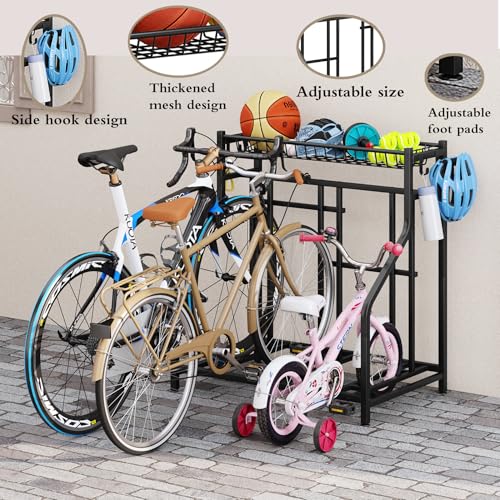 YIZAIJIA - حامل تخزين الدراجة منظم ارضي يحمل 3 دراجات وقوف السيارات قائم بذاته وقابل للتعديل للمراب في الاماكن المغلقة والمفتوحة ومحطة تخزين الرياضة، اسود (3 حوامل دراجات)