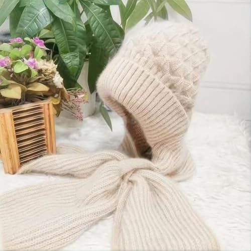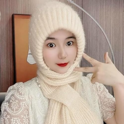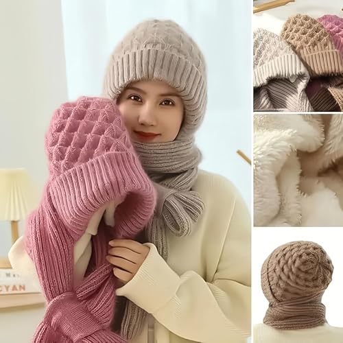 YJWZ - واقي اذن مدمج من واي جيه دبليو زد، وشاح قبعة مقاوم للرياح 2 في 1، وشاح قبعة لطيف للنساء مع بروش، قبعة محبوكة دافئة في الشتاء، وشاح بغطاء راس للنساء