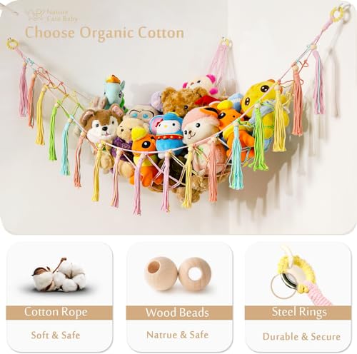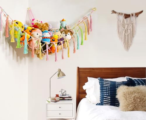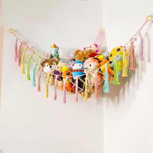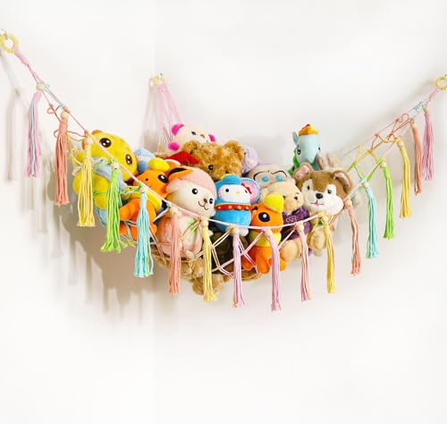 YKBU - شبكة أو مرجيحة تعلق في الزاوية لألعاب الحيوانات المحشوة، حامل مكرمية لعرض ألعاب قطيفة، منظم ألعاب لغرفة لعب الأطفال أو غرفة نومهم أو غرفة الأطفال بنمط بوهو من واي كيه بي يو