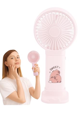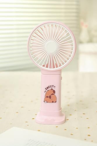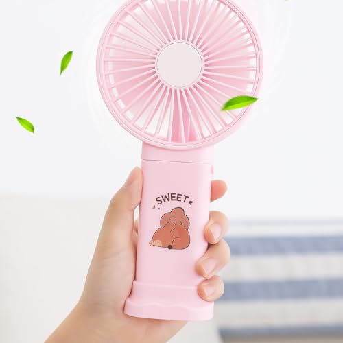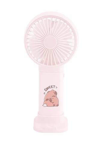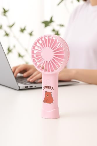 Generic - مروحة متنقلة صغيرة كرتونية بشكل جرو YM88209A بتصميم لطيف وخفيف 3 ريشة - 1.5 وات وبطارية قابلة لإعادة الشحن (بينك)