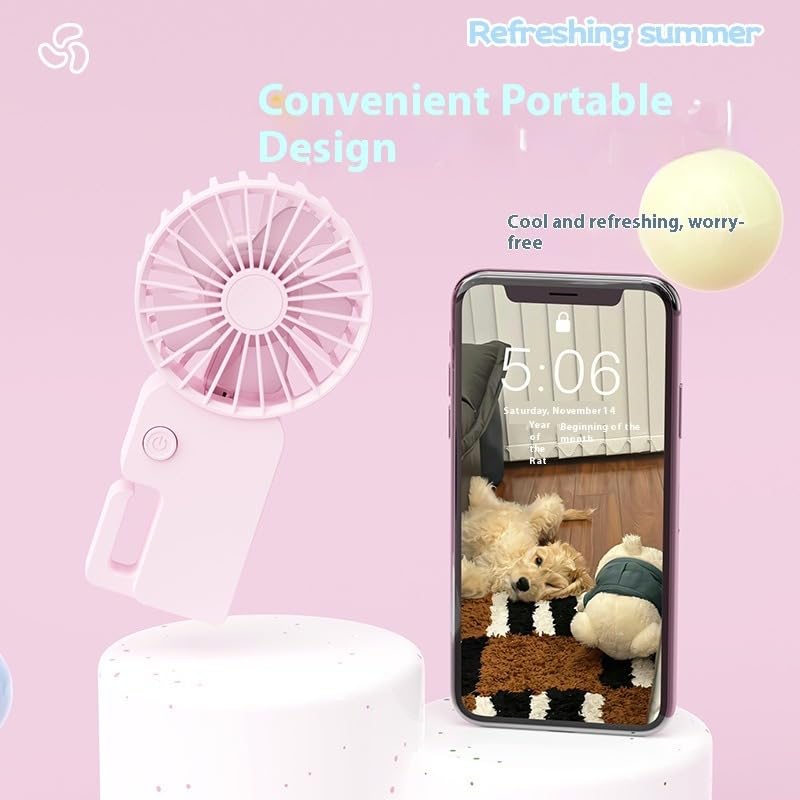 Generic - مروحة يد صغيرة قابلة للشحن موديل YM88217 بتصميم بسيط وخفيف - بطارية داخلية 4.2 فولت - مدخل USB (بينك)