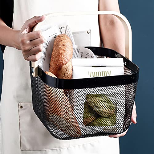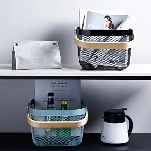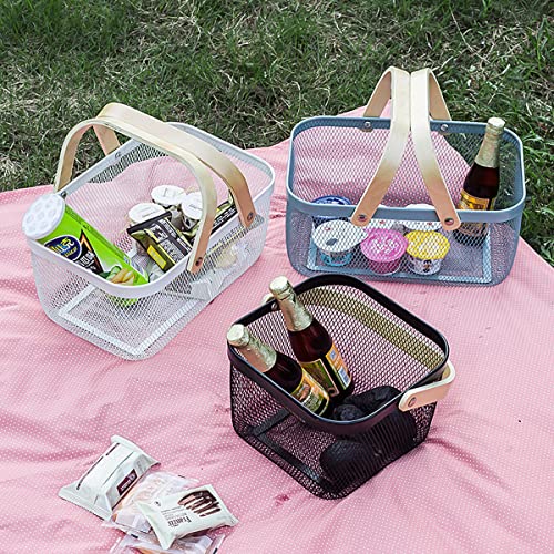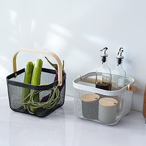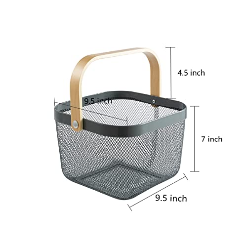 Ymeibe - سلة تخزين شبكية من الصلب مع مقبض خشبي للمطبخ والحمام والنزهات وتنظيم الدواليب والتخزين وديكور المنزل من يميبي - (لون رمادي)