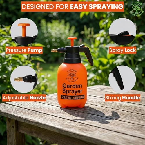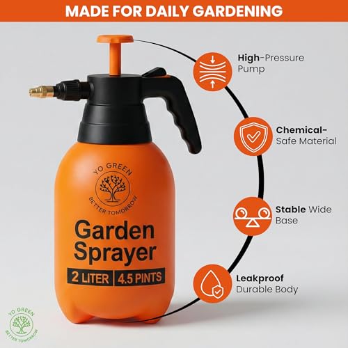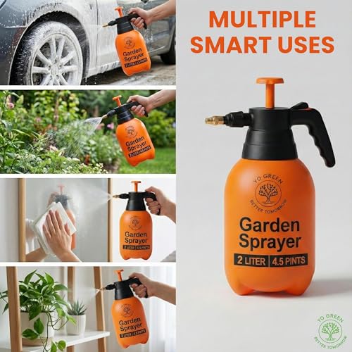Yo Green - زجاجة بخاخ لرش فائق من يو جرين (2 لتر)، بخاخ مضخة مياه للزراعة، بخاخ للحديقة المنزلية، زجاجات رش للحديقة والعشب، علبة سقي النباتات بالضغط اليدوي