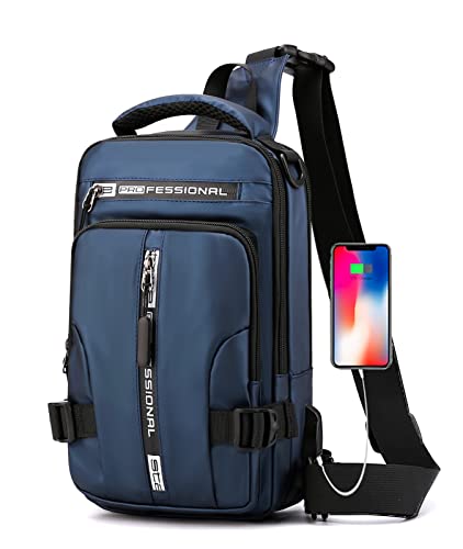 Yoanlayr - شنطة ظهر كروس يمكن تعليقها على الكتف والصدر للسفر والتنزه للجنسين مزودة بكابل USB من يوان لاير