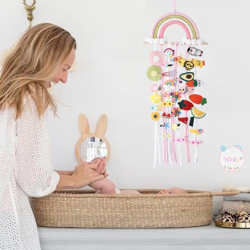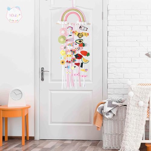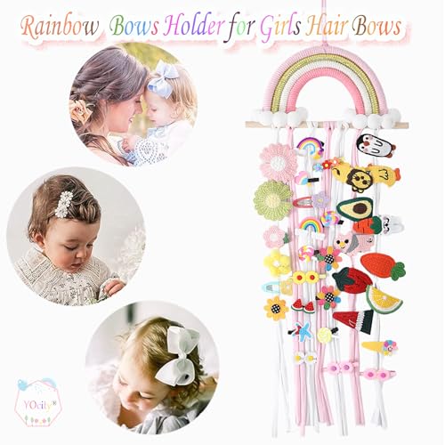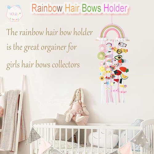 YOcity - حامل فيونكة منظم قوس قزح للبنات من يوسيتي لعرض فيونكات الشعر على الحائط لتزيين غرفة الاطفال