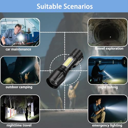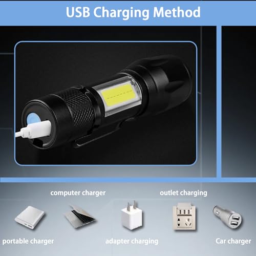 - مصباح فلاش LED قوي مع مصباح عمل سي او بي جانبي للتخييم والمشي لمسافات طويلة والمنزل في الهواء الطلق