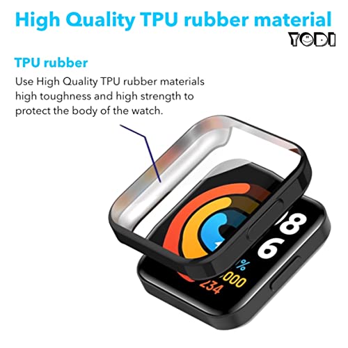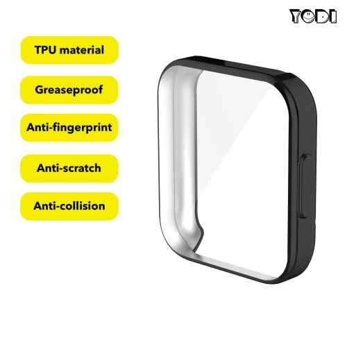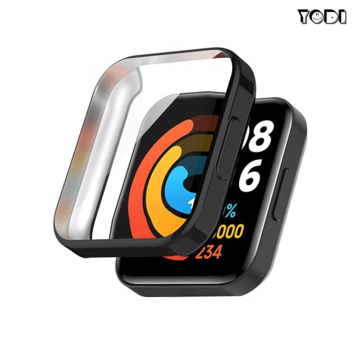 YODI - جراب مع شاشة حماية مرنة قابلة للإزالة من البولي يوريثين المقاوم للحرارة لساعة ريدمي ووتش 2 لايت (3.94 سم) من يودي®، مضاد للخدش 360 درجة، غطاء كامل مضاد للصدمات للرجال والنساء (أسود)