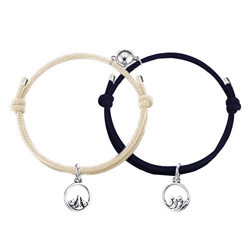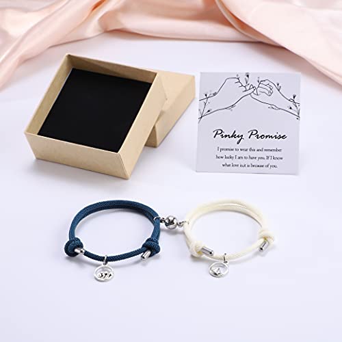 Yofair - يوفير سوار للازواج من حبل جذب مضفر له ولها، هدايا عيد ميلاد للذكرى السنوية للنساء والرجال، حبل معدني، زركونيا مكعب