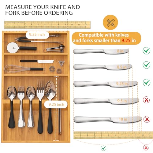 - 【منظم أدراج من الخيزران الطبيعي النقي】: منظم الأدراج للمطبخ مصنوع من الخيزران المعاد تجديده طبيعيًا، وكامل منظم الأدراج لأدوات المائدة مصنوع من مادة الخيزران الصافي. مادة الخيزران ليست سهلة التلف مثل منظمات الأدراج البلاستيك، ولا تتعرض للعفن مثل صناديق أدوات المائدة الخشب.