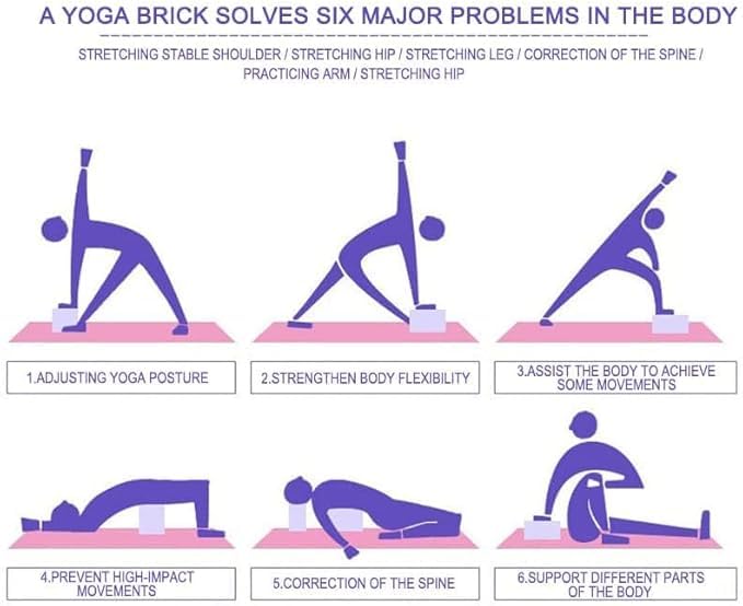 - الأبعاد: يبلغ مقاس كل مكعب حوالي 23 سم طول × 15 سم عرض × 3 سم ارتفاع، مما يوفر الدعم الأمثل لمختلف أوضاع اليوغا