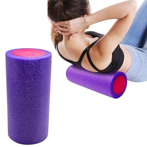 Qshop - بكرة إسفنجية لتمارين اليوغا واللياقة البدنية والعضلات، عالية الكثافة من فوم ايفا، بكرات لامعة صلبة رائعة لتخفيف آلام الظهر والساق وتمديد العضلات والعلاج الطبيعي والتوازن واللياقة البدنية (Purple)