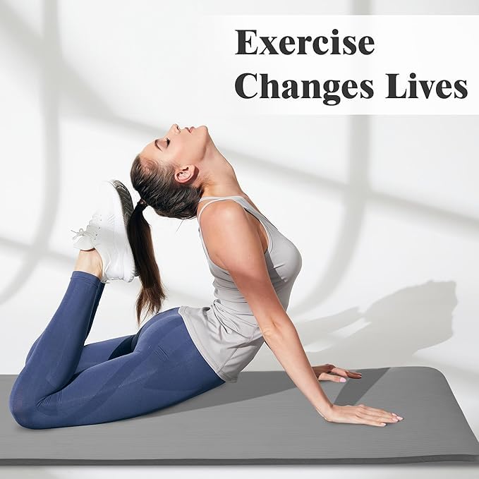 Generic - سجادة يوجا 1 انش سميكة للغاية وعالية الكثافة مع سطح غير قابل للانزلاق وحزام حمل للرجال والنساء، سجادة تمارين بيلاتيس مقاومة للتمزق لصالة الالعاب الرياضية المنزلية واللياقة البدنية على الارض، رمادي