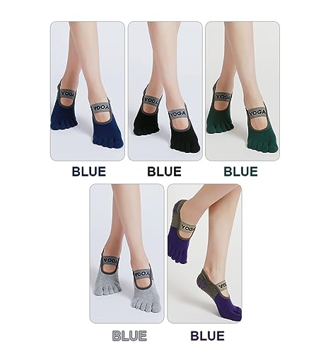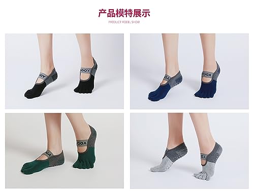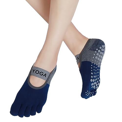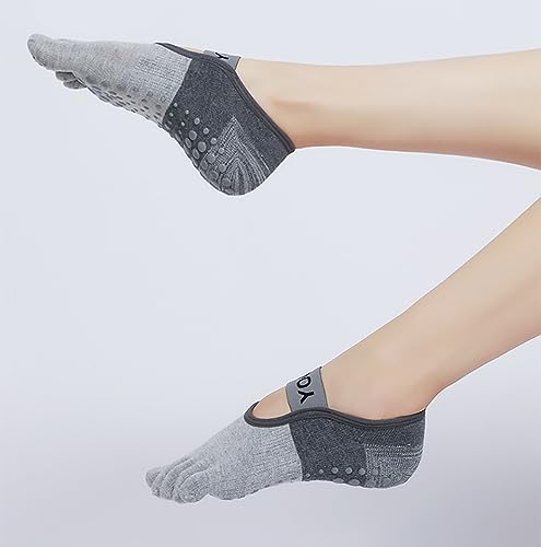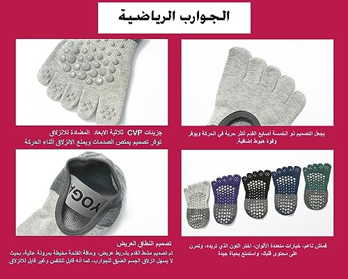 Generic - جوارب اليوجا للنساء - جورب يغطى اصبع القدم بالكامل - جوارب مقاومة للانزلاق مثبتة بحزام