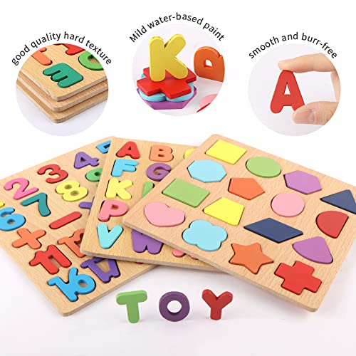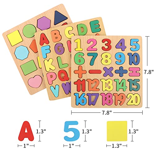 - [مجموعة من 3 قطع من البازل الخشبية]: تتضمن مجموعة البازل الخاصة بنا بازل الحروف الأبجدية مع 26 قطعة من الحروف الأبجدية، وبازل أرقام مع 25 رقمًا ورمزًا، وبازل شكل بـ 16 شكلًا مختلفًا