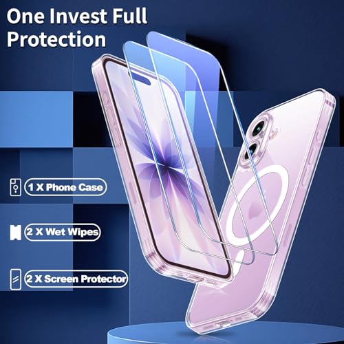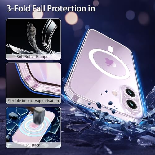 Yohii - يوهي غطاء مغناطيسي 3 في 1 لـ 17 مع قطعتين من الزجاج المقوى [حماية الكاميرا] متوافق مع ماج سيف، حافظة مضادة للصدمات من الدرجة العسكرية، شفاف