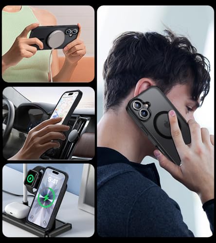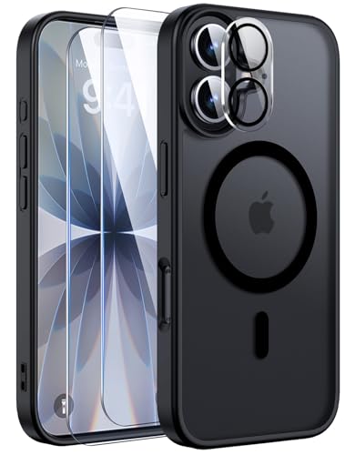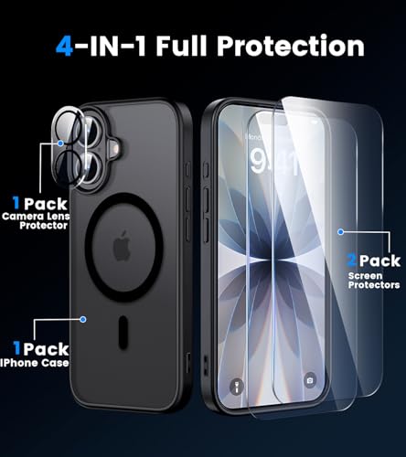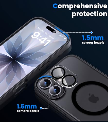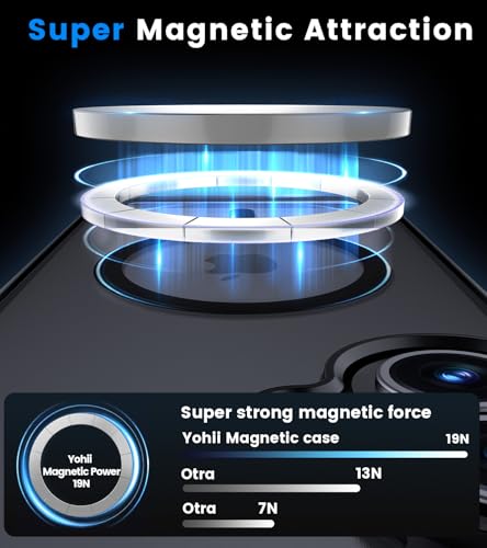 Yohii - يوهي جراب موبايل 17 مغناطيسي على 2 زجاج مقسى، حماية كاميرا، متوافق مع ماج سيف، جراب موبايل شفاف غير لامع نحيف مضاد للصدمات (اسود)