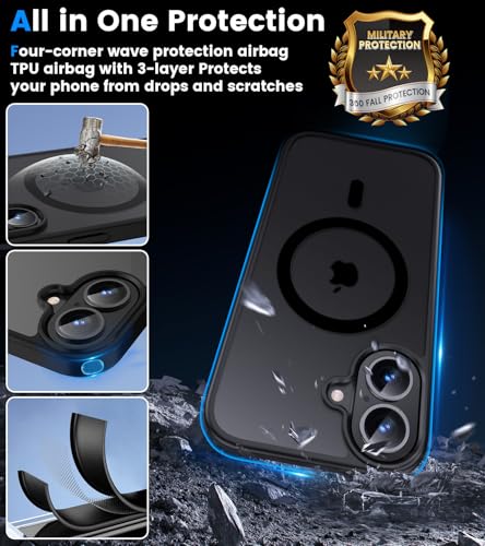 - حماية من السقوط من الدرجة العسكرية: 4 وسائد هوائية مدمجة في الزوايا هيكل جديد مدمج مقاوم للسقوط، مصمم بإطار مرن من البولي يوريثين الحراري وظهر صلب من البولي كربونات، امتصاص فعال للصدمات، يحمي هاتفك لتجنب الاصطدامات والأضرار الناجمة عن السقوط. ضمان حماية 360 درجة لهاتفك.