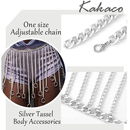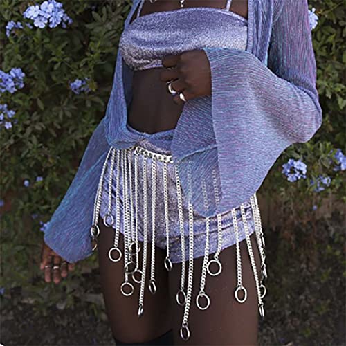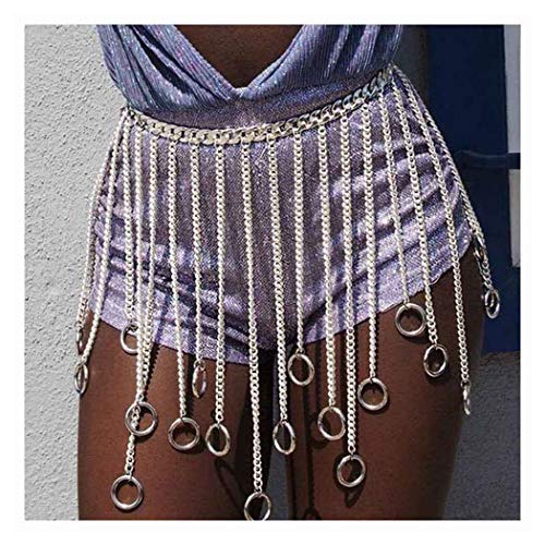 Yokawe - حزام خصر بشراشيب بوهو فضي اللون، سلاسل الجسم، اكسسوارات الجسم، مجوهرات للنساء والبنات