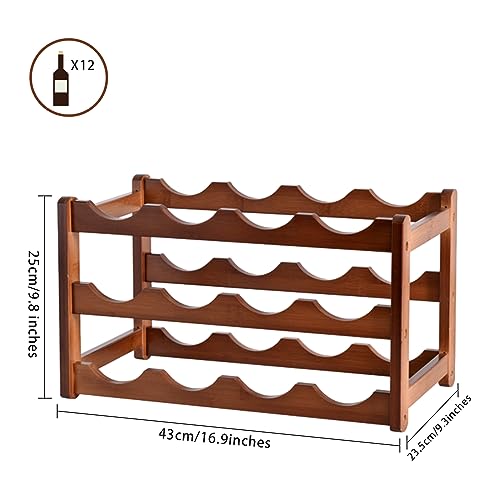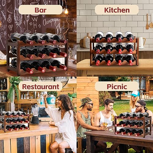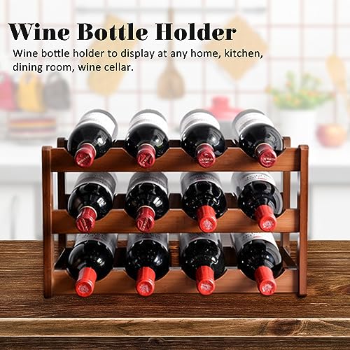 Yolispa - رف خشبي لزجاجات المشروبات، حامل عرض قائم بذاته من 3 أدوار، منظم تخزين بنمط رترو بسيط للمطبخ والمخزن والقبو والدولاب وسطح الطاولة سعة 12 زجاجة من يوليسبا