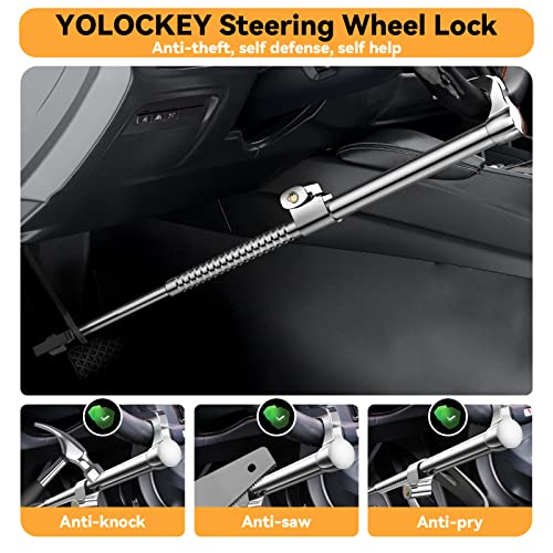 YOLOCKEY - قفل عجلة قيادة السيارة، قفل عجلة القيادة العالمي من يولوكي، قفل فرامل السيارة، جهاز مضاد للسرقة بطول قابل للتعديل، مشبك مزدوج خطاف أمان لدبرياج السيارة 3 مفاتيح للسيارات والشاحنات والدفع الرباعي