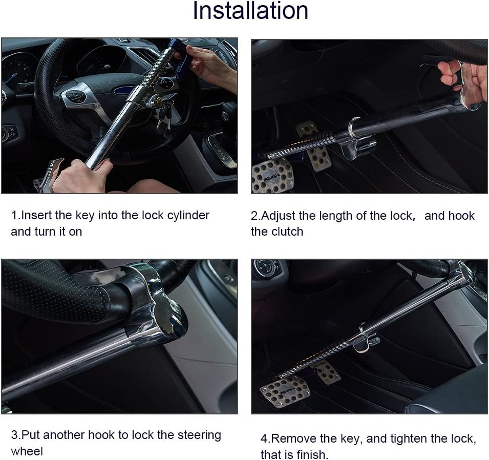 - أمان عالٍ: يأتي مع 3 مفاتيح. كل قفل له مفتاحه الفردي. لا يمكن للآخرين الذين اشتروا نفس المنتج الدخول إلى سيارتك أو استخدام القفل الخاص بك. يمكن لأقفال طارة دركسيون الخاصة بنا تحمل المحاولات القوية لكسرها. يعمل قفل الفرامل على تثبيت السيارة، ولا يمكن لأحد قيادة السيارة والهرب بها.