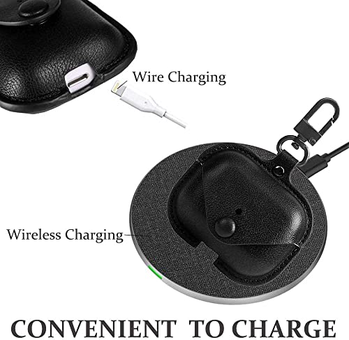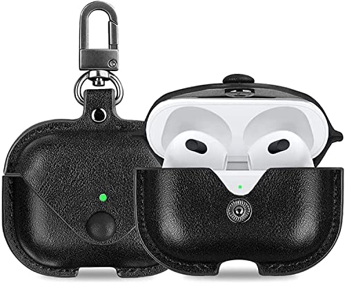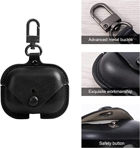 YOMNA - جراب حماية جلد لسماعات آبل ايربودز برو 2، جراب شحن لاسلكي من الجلد الناعم بمشبك من يومنا، أسود