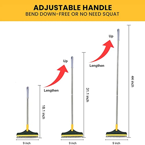 - 【مقبض طويل قابل للتعديل 1.12م/44 بوصة】فرشاة لتنظيف البلاط بمقبض طويل مع 3 عصي تتراوح أطوالها بين 80 سم/ 31.5 إلى 1.12م/ 44 بوصة، يمكنك ضبط طول مقبض الفرشاة بما يتناسب مع مهمة التنظيف. سوف تشعرون براحة أكثر، مع مسح الأرض دون الحاجة إلى الانحناء.