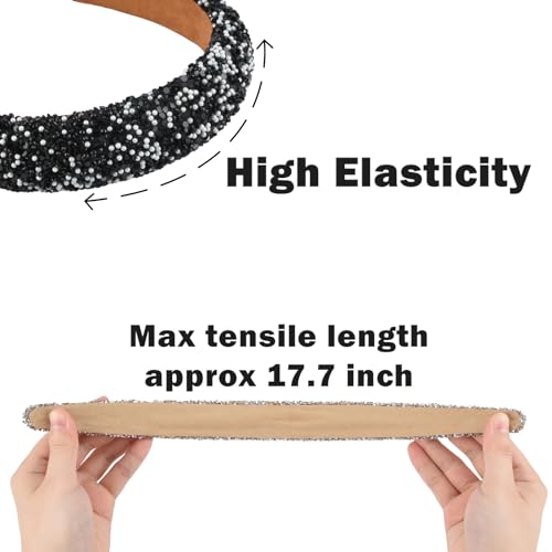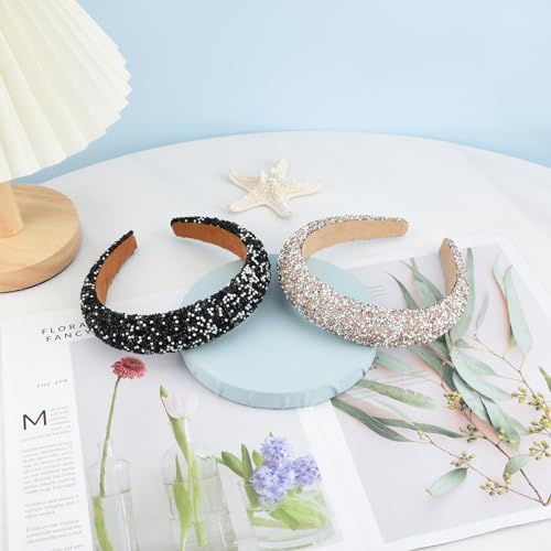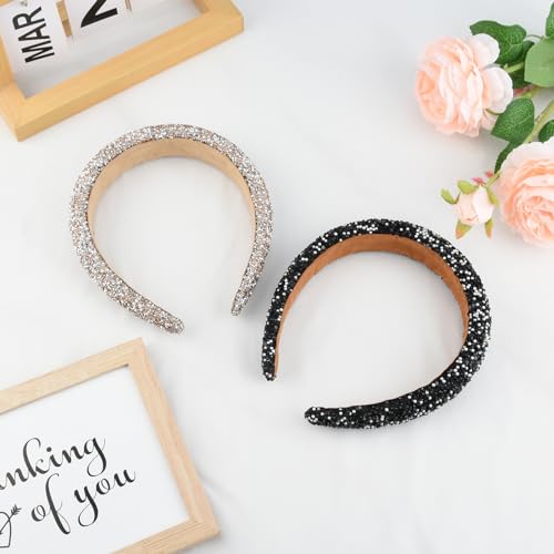 Yonchic - طوق رأس مرصع بحجر الراين للنساء والبنات من يونشيك، طوق رأس مرصع بالألماس اللامع للشعر الخفيف/ متوسط الكثافة، اكسسوارات شعر مرصعة بالجواهر اللامعة (أسود وبني)، 2 قطعة