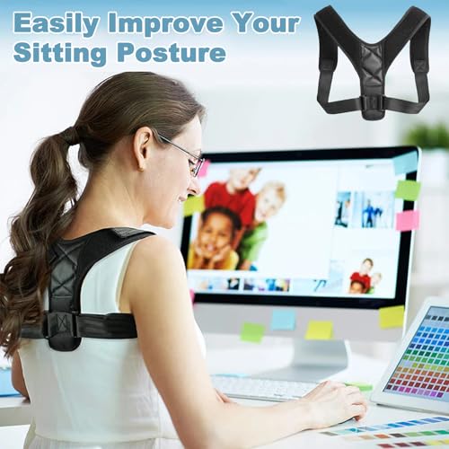 YONEEKSS - دعامة ظهر مصحح وضعية الجسم للنساء والرجال، حزام دعم قابل للتعديل لفرد الكتف وتخفيف آلام الرقبة والظهر من يونيكس