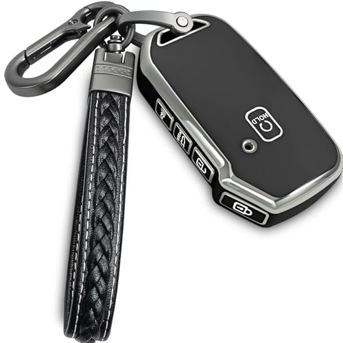 Yonmcfn - حافظة مفتاح فوب مع سلسلة مفاتيح معدنية/جلدية، حافظة مفاتيح من البولي يوريثين الحراري بـ 5 أزرار من يونمكفن، ملحقات مفاتيح السيارة بتصميم أنيق، لون أسود