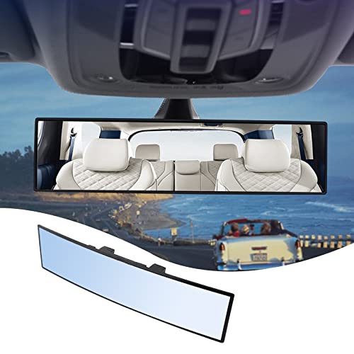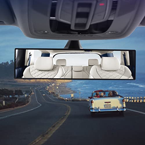 Yonput - مراية صالون بانورامية للسيارة من يونبوت، مقاس 30 سم، عالية الدقة HD منحنية مضادة للتوهج لمساحة رؤية كبيرة، تشتمل على مراية زاوية عريضة بمشبك تعليق وتتيح رؤية النقط العمياء، للسيارات والشاحنات (شفافة)
