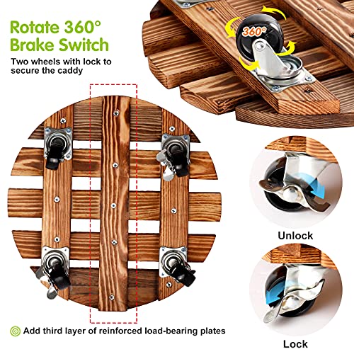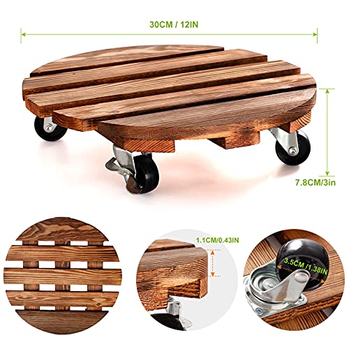 HOHY - حامل نباتات خشبي دوار دائري شديد التحمل مع عجلات قابلة للقفل بزاوية 360° لأصيص النباتات الداخلية والخارجية وأصيص الزهور والفناء من يونتيني، 30 سم، قطعتين