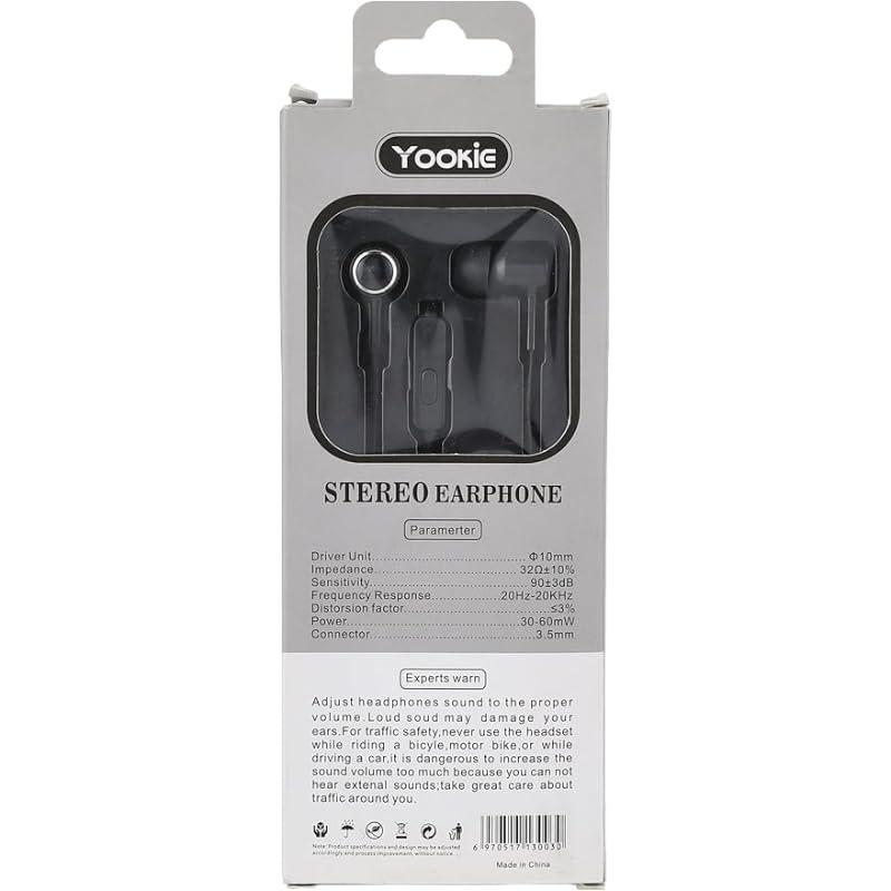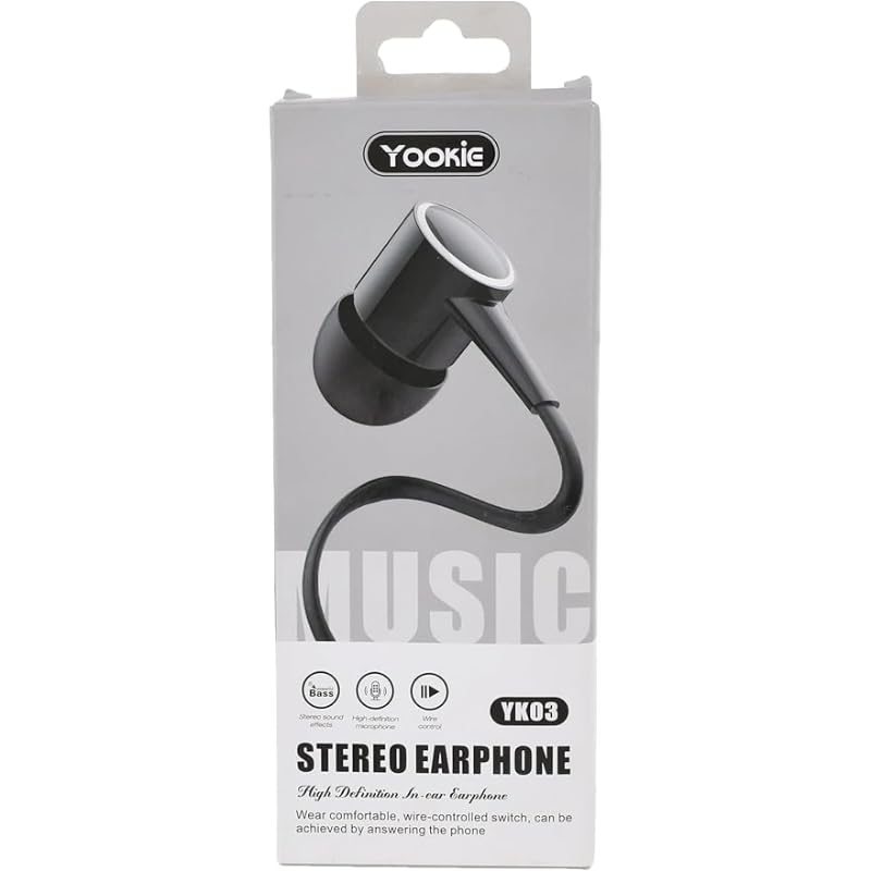 Yookie - سماعات أذن سلكية بميكروفون وصوت ستريو موديل YK03 من يوكي، مقاس مريح، لون أسود