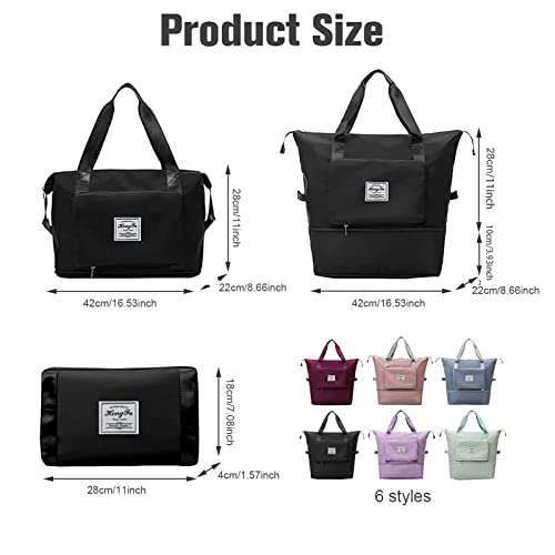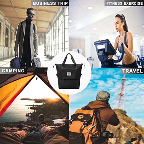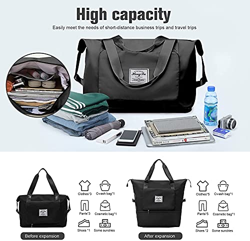 Yootick - شنطة سفر دفل كبيرة السعة قابلة للطي ومقاومة للماء بفصل بين الجاف والرطب من قماش اوكسفورد للمبيت في اخر الاسبوع والرياضة وصالة الالعاب الرياضية والاجازة, أسود