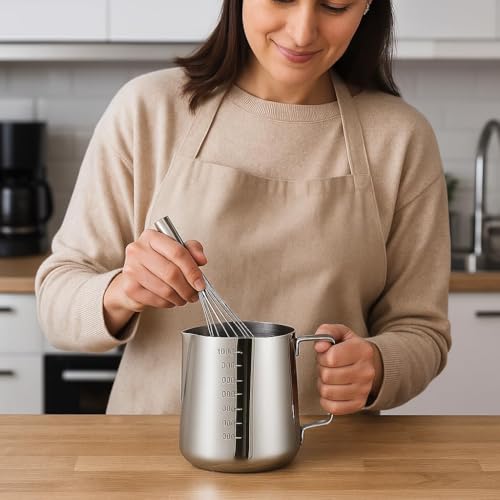 - كوب متعدد الأغراض - إبريق الرغوة هذا ذو المقبض مثالي لصنع رغوة الحليب للقهوة والكابتشينو واللاتيه والماكياتو والشوكولاتة الساخنة. يعمل أيضًا ككوب قياس أو إبريق تقديم أو إبريق خلط لكل من المطابخ المنزلية والمقاهي.
