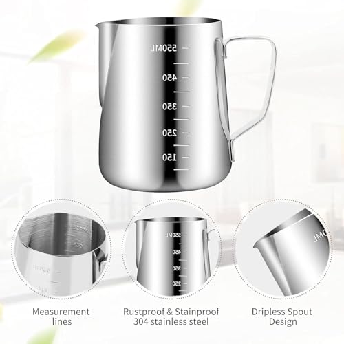 - سهلة القياس والصب - تسمح الفوهة الدقيقة بصب سلس دون انسكابات، مما يجعلها مثالية لفن اللاتيه وتصميمات الكابتشينو وتقديم المشروبات الساخنة. مناسبة للباريستا والمقاهي والفنادق والمطابخ المنزلية.