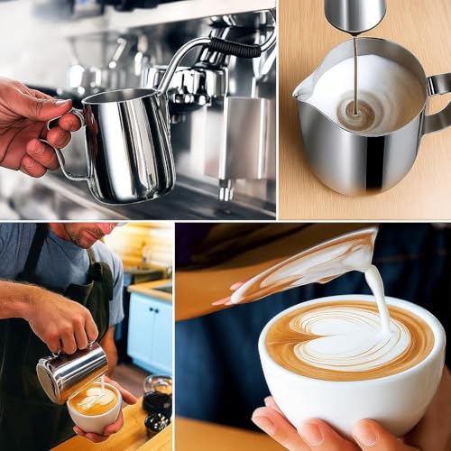 - تجربة قهوة باريستا ستايل - احصل على رغوة بجودة احترافية مع كوب رغوة الحليب هذا. ضرورية لمحبي القهوة ومحبي القهوة، فهي تضمن رغوة ناعمة وكريمية لمشروبات المقهى المفضلة لديك في المنزل أو المقهى.