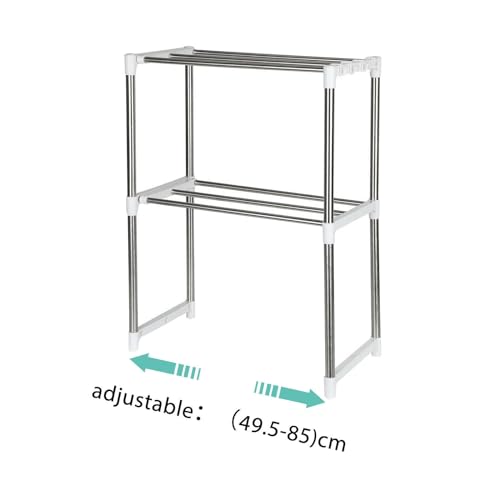 - [مادة عالية الجودة]: رف الميكروويف مصنوع من أنبوب من الفولاذ المقاوم للصدأ فائق القوة ومادة البولي بروبيلين، مما يجعله متينًا ومقاومًا للماء والصدأ، مع تصميم متعدد الطبقات لتخزين أكثر تنظيمًا وسهولة في الاستخدام.