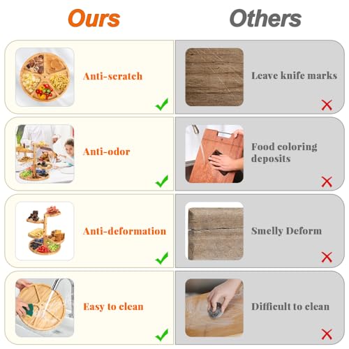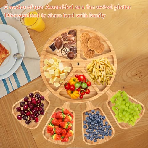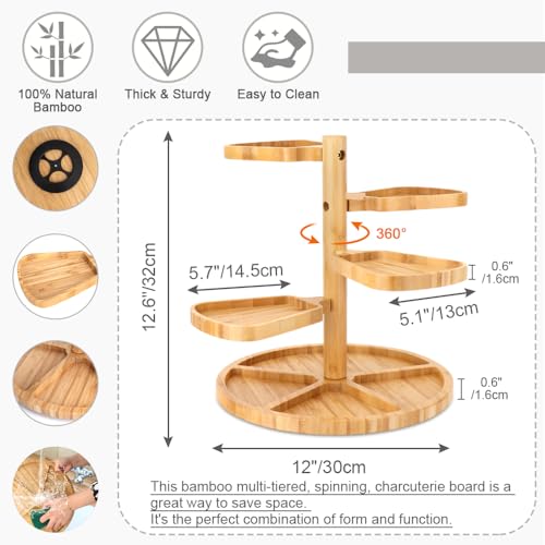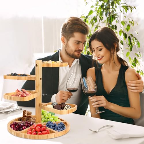 YOSE - يوس صينية تقديم بطبقات من الخيزران، اطباق دوارة لتقديم الطعام في الحفلات، صينية لوح الجبن المقرمشة، يمكن استخدامها كهدية، اختيار مثالي للذواقة، بامبو