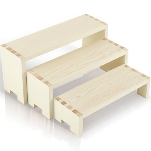 Yoshiky - رافعات عرض خشبية صغيرة من يوشيكي، حامل منظم للعطور من 3 طبقات، حامل خشبي للكب كيك والكب كيك، رف عرض طاولة الحلوى للشخصيات، حامل رافع للحفلات للديكور والتنظيم للرجال