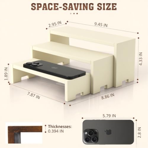 - 【مجموعة هدايا مثالية】 تتضمن ثلاثة رافعات عرض مدمجة بأحجام متعددة، مثالية للمساحات الصغيرة وتعزيز ديكورك: صغير: 1.9 انش ارتفاع × 7.8 انش عرض × 2.9 انش عمق متوسط: 3.1 انش ارتفاع × 8.6 انش عرض × 2.9 انش عمق كبير: 4.3 انش ارتفاع × 9.4 انش عرض × 2.9 انش عمق هدية مدروسة أي شخص يحب حلول التنظيم المنزلي العملية والأنيقة.